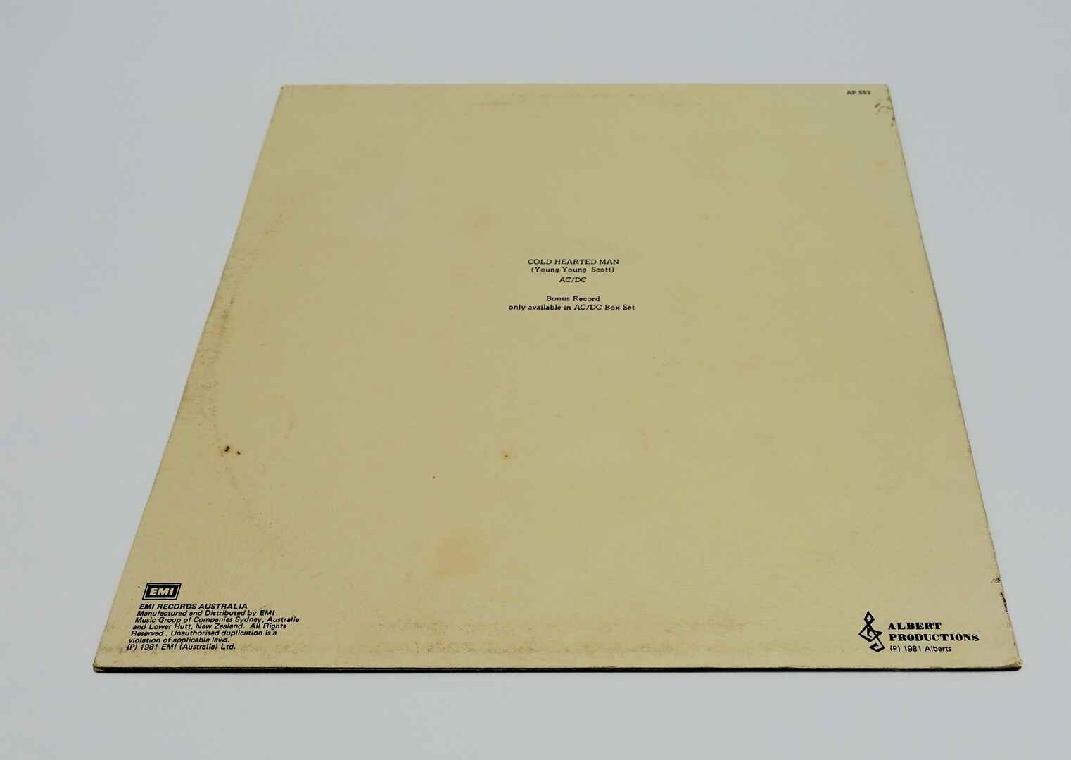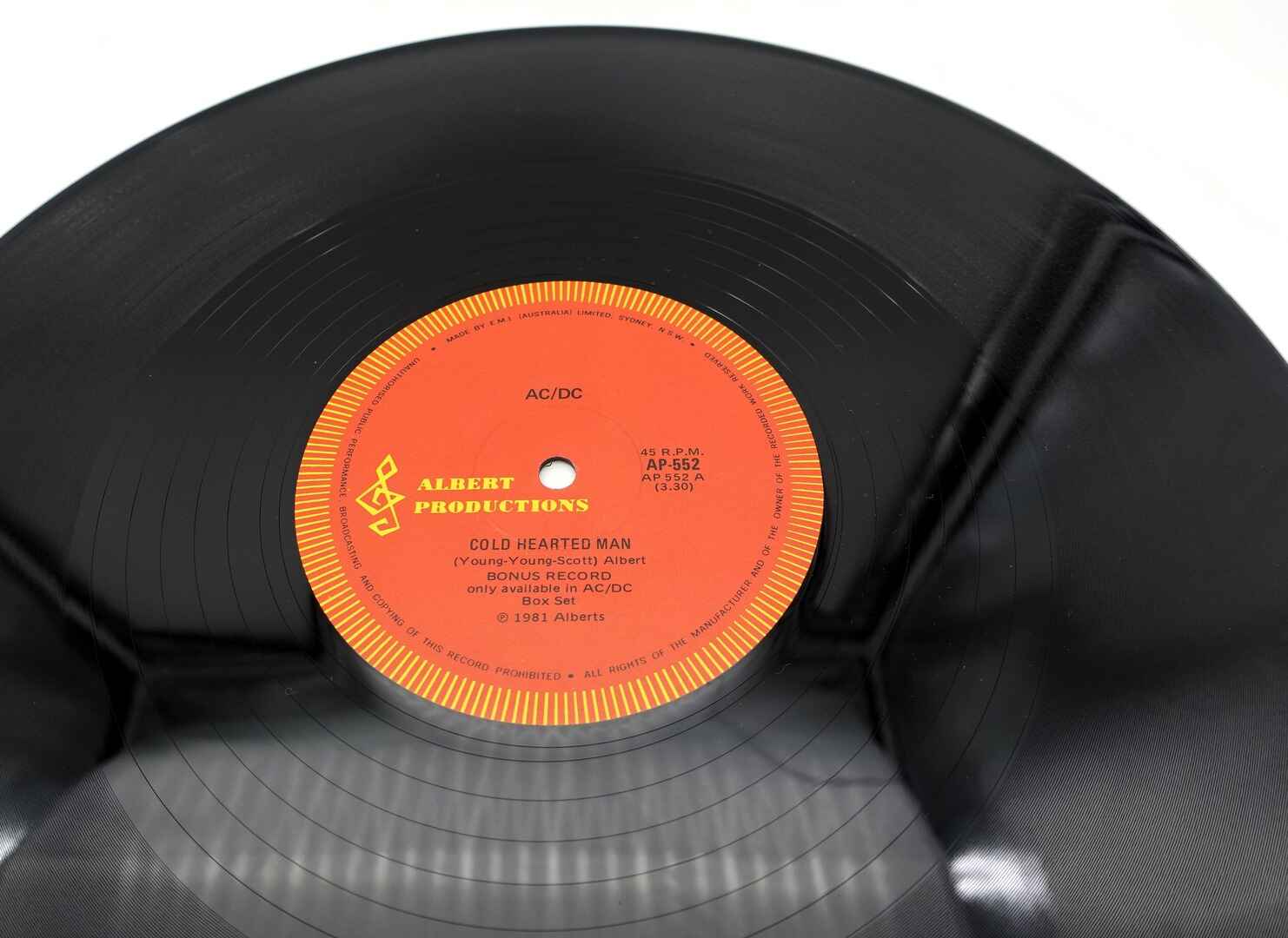 Comments: AC/DC Cold Hearted Man Vinyl LP Record 45RPM Aussie Alberts White Label Promo 1st Pressing