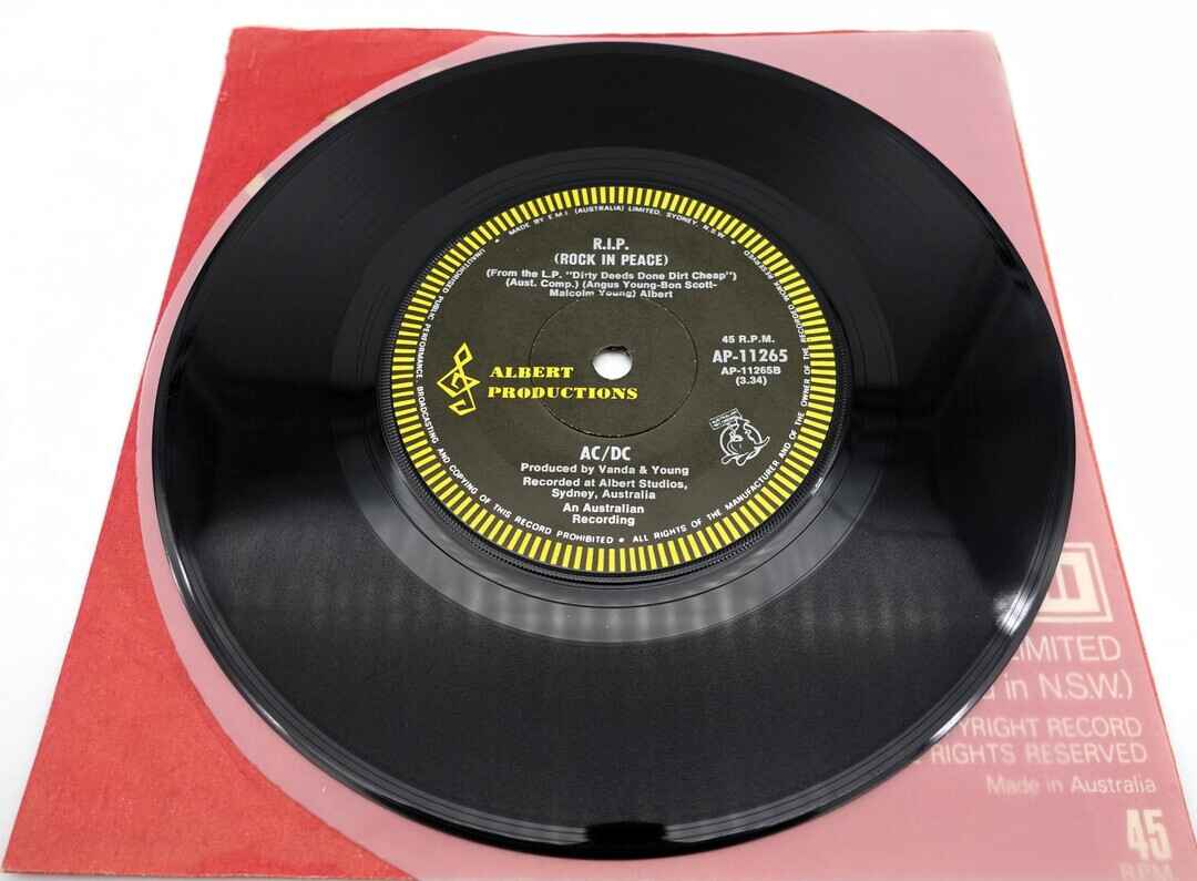 AC/DC Dirty Deeds / R.I.P. (Rock In Peace) 7″ 1977 A-Label Promo Press
